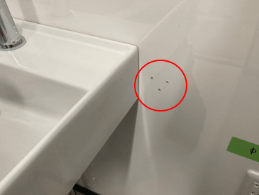 手洗い洗面横のサニタリーパネルに穴が3つありました。