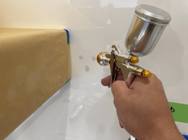 パテ処理し、プラサフ・ウレタン塗料を吹き付けて仕上げます。